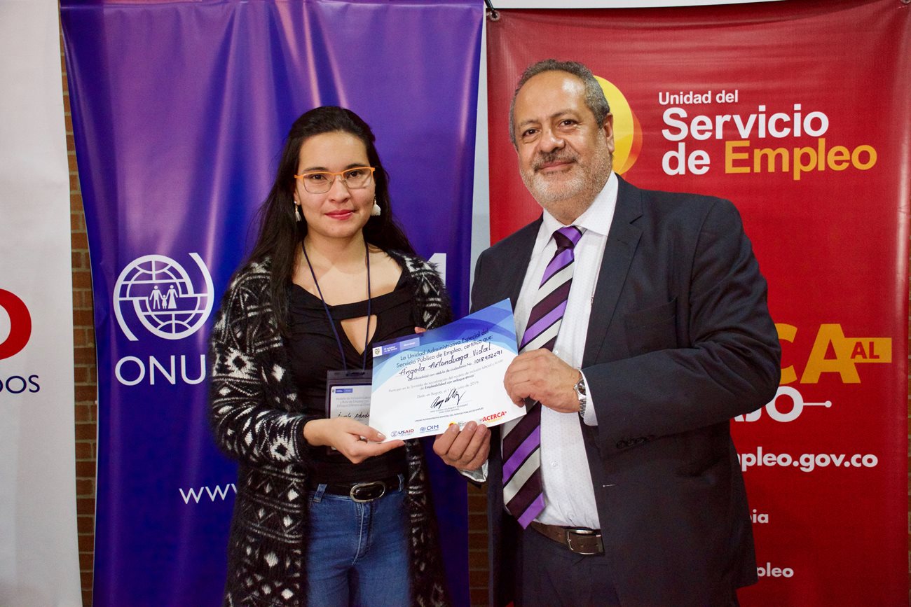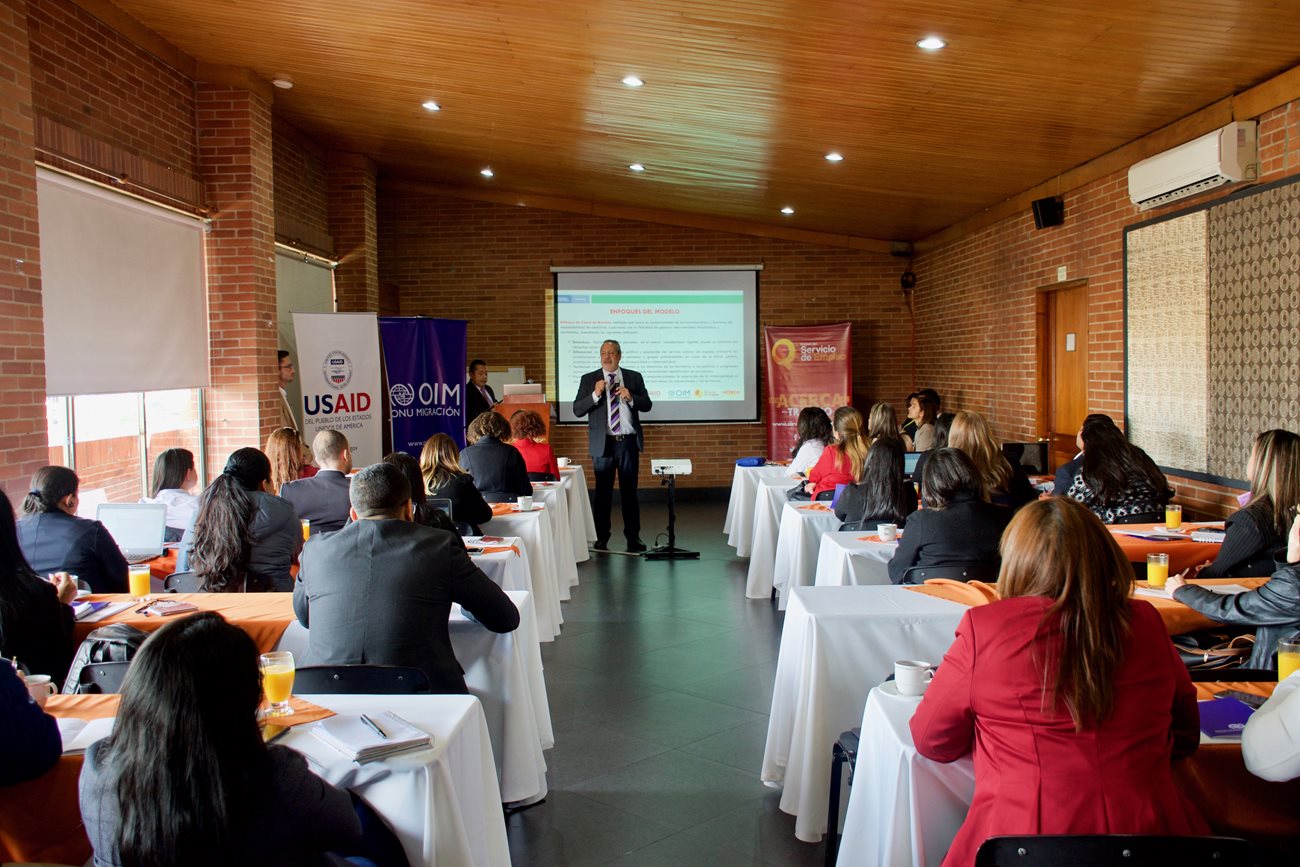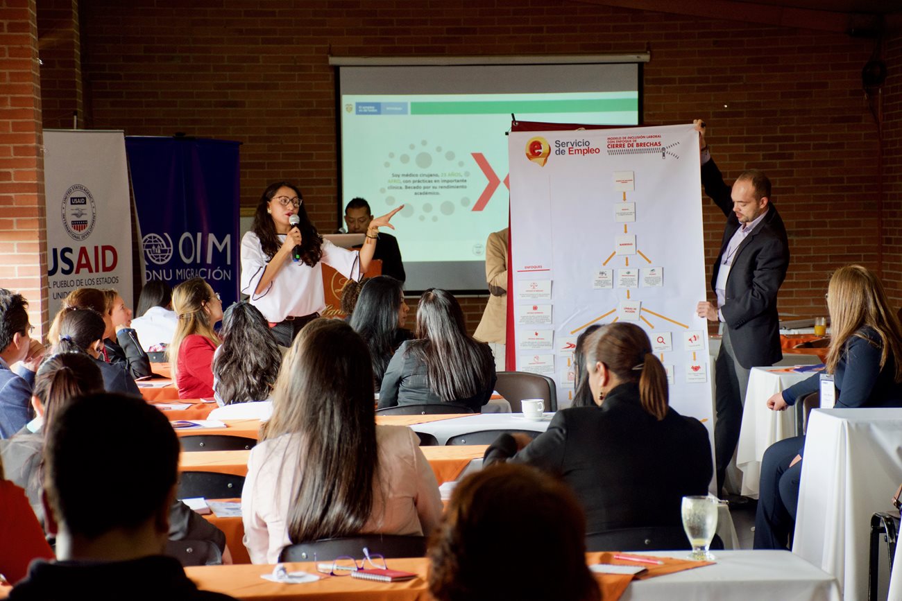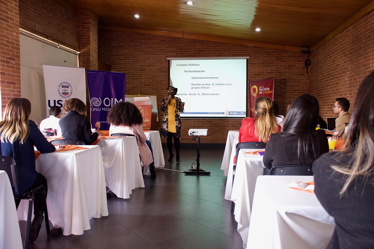 Bogotá, junio 11 de 2019. En el marco de la socialización del Modelo de Inclusión Laboral y la Ruta de Empleo con Enfoque Diferencial Étnico, alianza suscrita entre la Unidad del SPE y OIM, la directora Angi Velásquez hizo un llamado a las prestadores de Bogotá y Cundinamarca que asistieron a este evento para que todas las acciones que realicen estén orientadas a que las personas accedan a oportunidades laborales de manera equitativa y así facilitar el encuentro de un trabajo formal y decente.