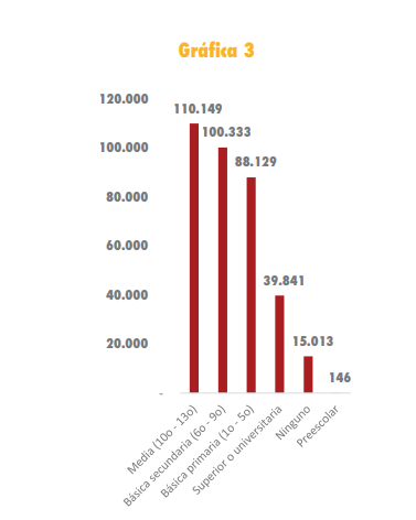 Entre las personas más propensas a enfrentar este tipo de barreras también estuvieron aquellas que contaban con un nivel educativo inferior al medio, es decir aquellos con básica primaria (1° – 5°), básica secundaria (6° – 9°) y media (10° – 13°), teniendo este último la mayor participación con un 31% de las personas que afrontaron algunas de estas limitaciones en la búsqueda de un empleo, seguido de básica secundaria con el 28% y básica primaria con el 25% (ver Gráfica 3).