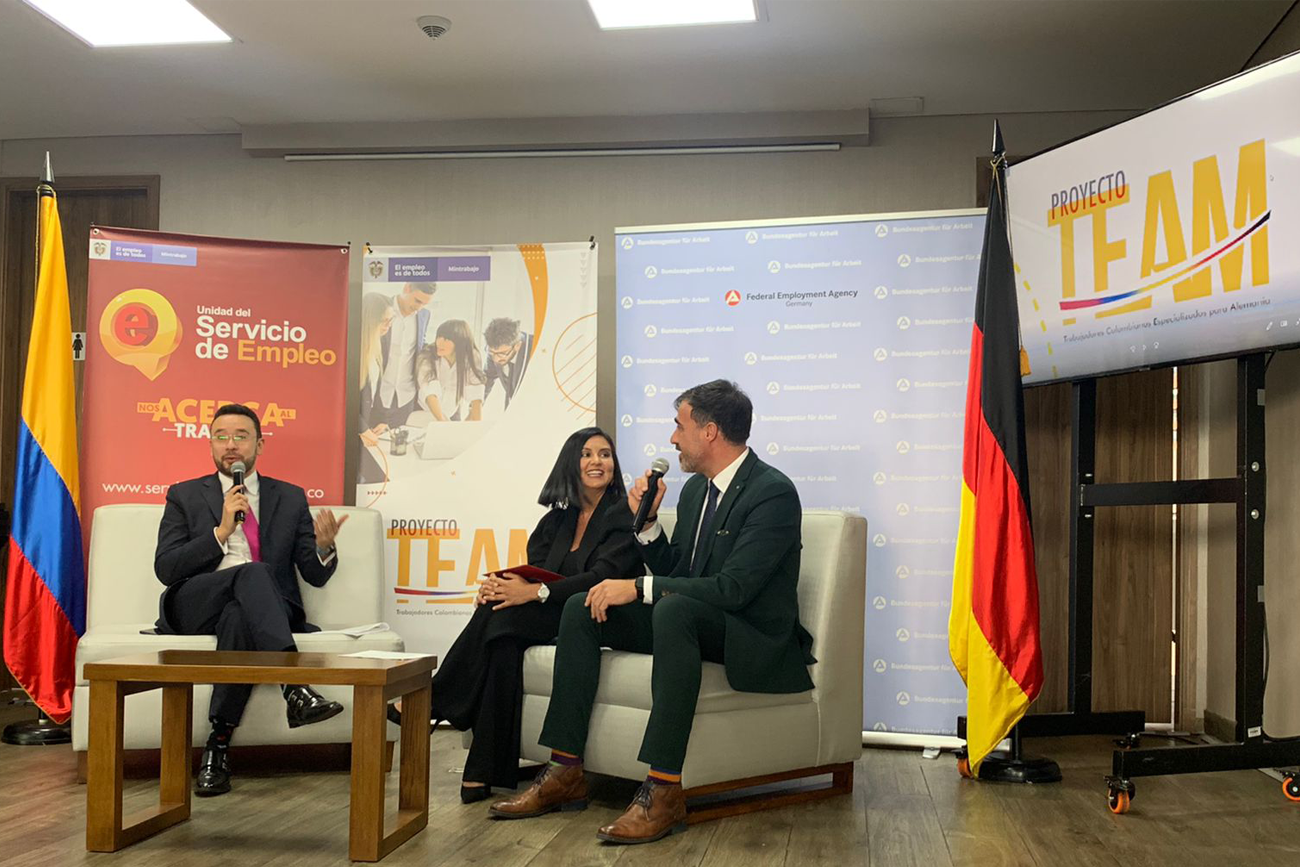 La Unidad del Servicio Público de Empleo, junto con la Agencia Federal de Empleo de Alemania (Bundesagentur für Arbeit, BA), hizo la presentación oficial del Proyecto TEAM, ‘Trabajadores colombianos Especializados para Alemania’, iniciativa hecha realidad que integrará laboralmente a colombianos en ese país europeo.